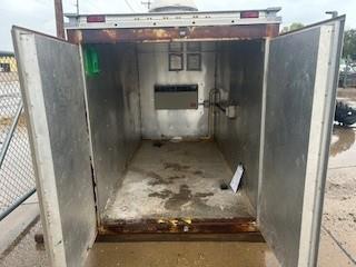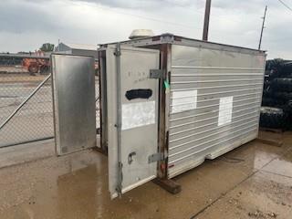 Tesco storage container, 66"W x 10'L x 67 1/2"H, inside has a heater with an electromode thermostat, range from 40°f to 90°f, 125 volt, motor rating 120 v.a.c. or 240 v.a.c.