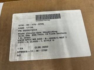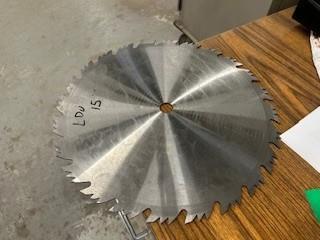 Peerless Saw Company, 16" circular saw blade, wood cutting, .095 thick, 24 teeth section, 1" arbor.