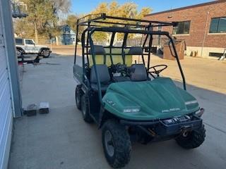 1999 Polaris Ranger, 6x6 with sprayer tank and handheld wand on back. Electric dump bed equipped with ladder back, 380 hours.