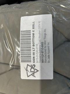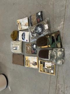 Cold weather gear including: PolarTech fleece pullover jacket and pants. Long Johns in regular and fire-proof. Cold weather stocking hats, neck gators, mittens, and parka ranging from $1.00 to $20.00