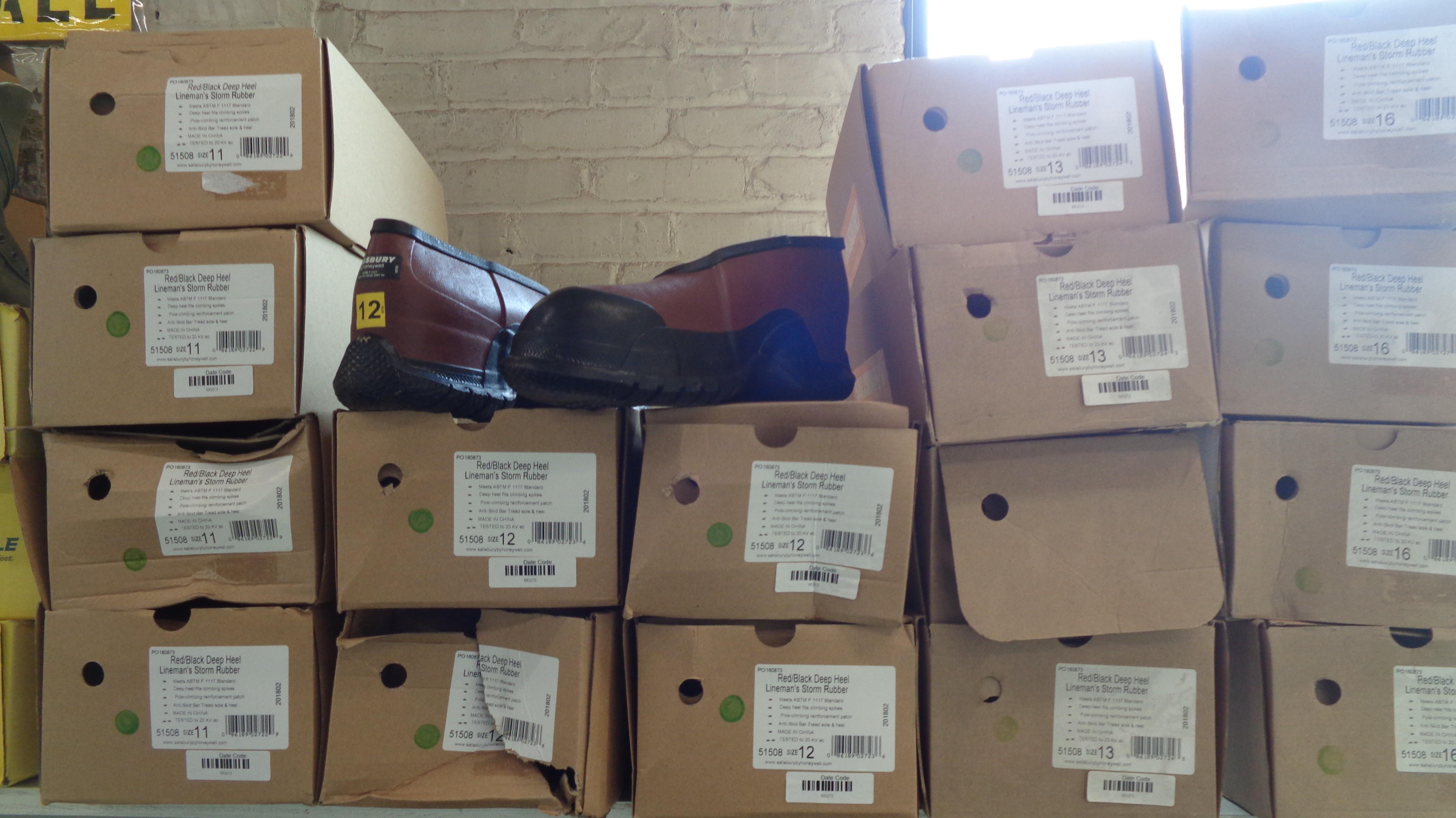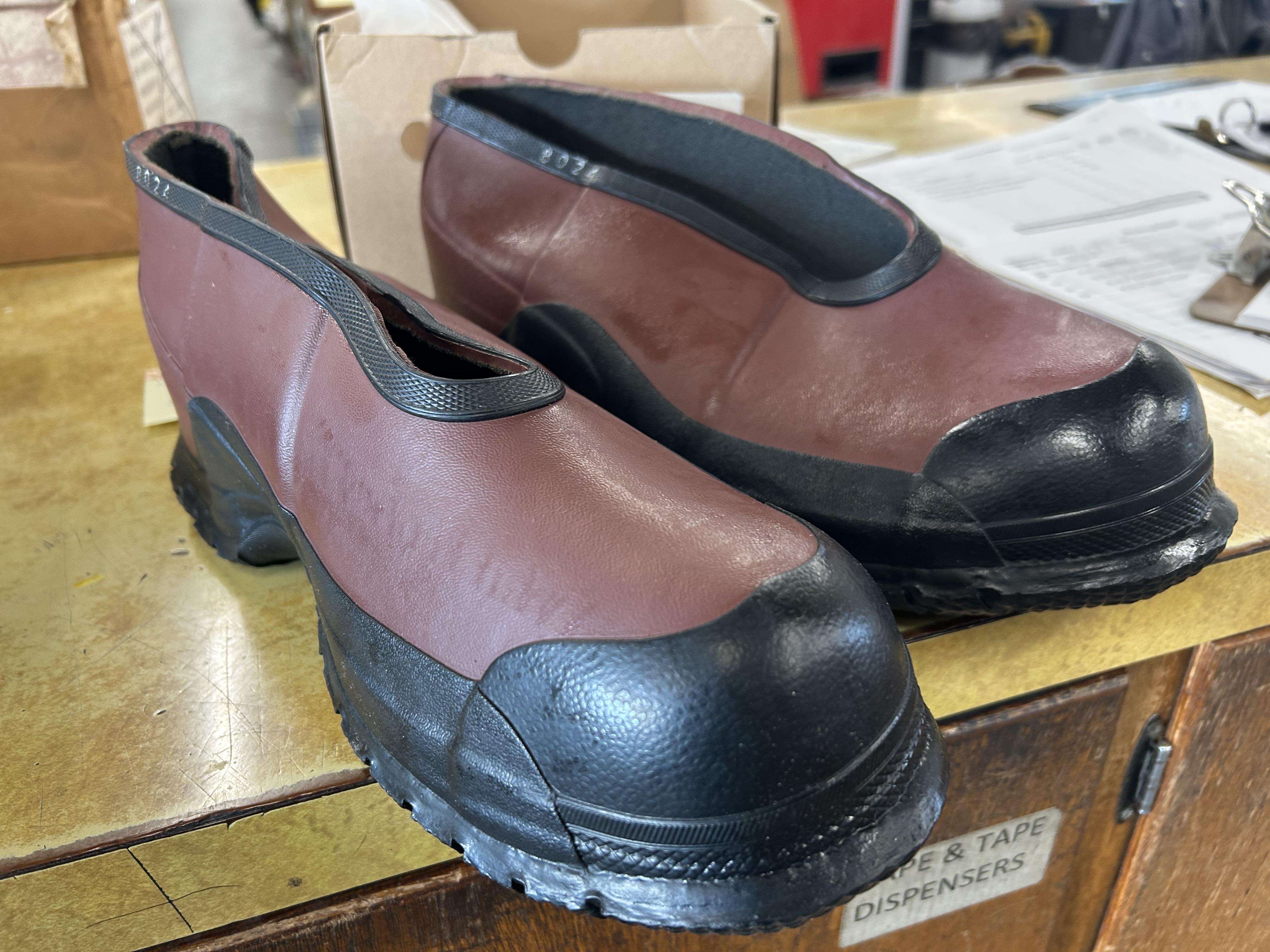 Salisbury Lineman's Slip-On Overshoe. Red/Black rubber tested to 20kV AC. Deep heel, fits climb spikes, Anti-skid. Brand new, available in sizes 11, 12, 13, 16.