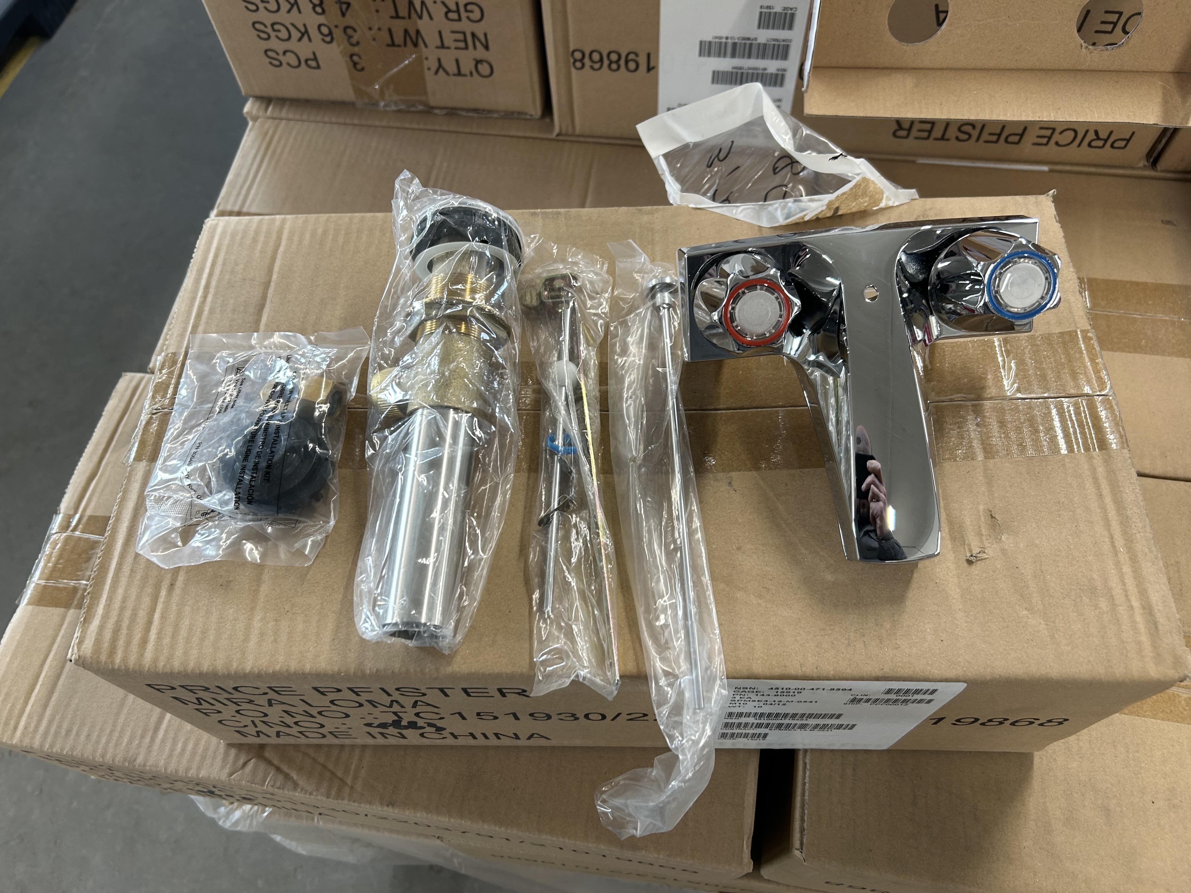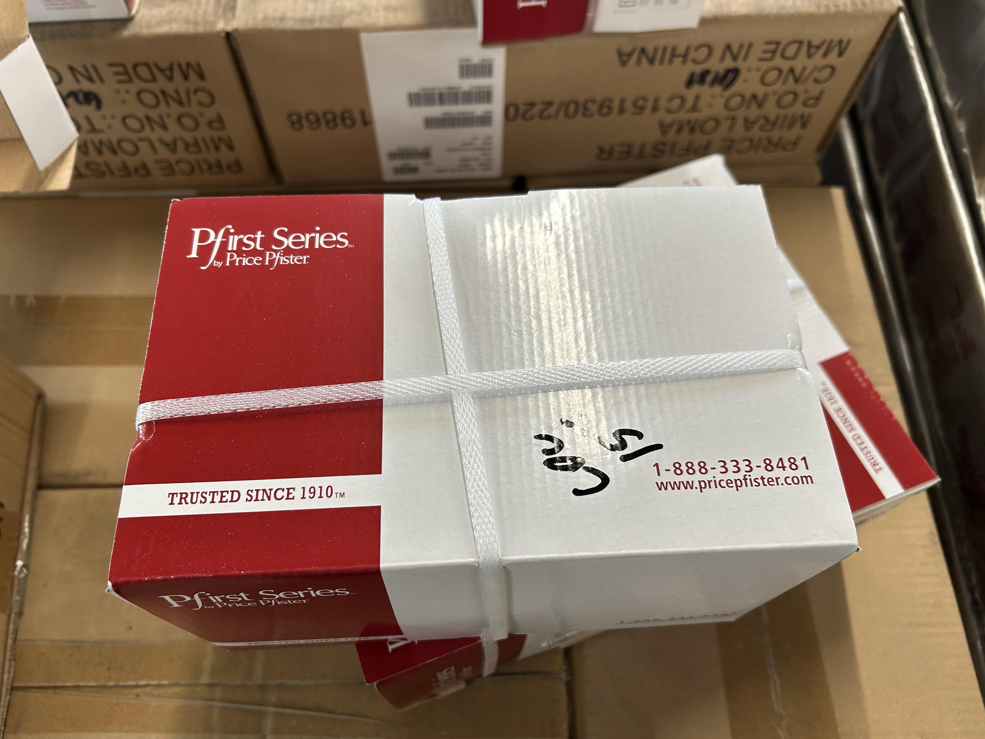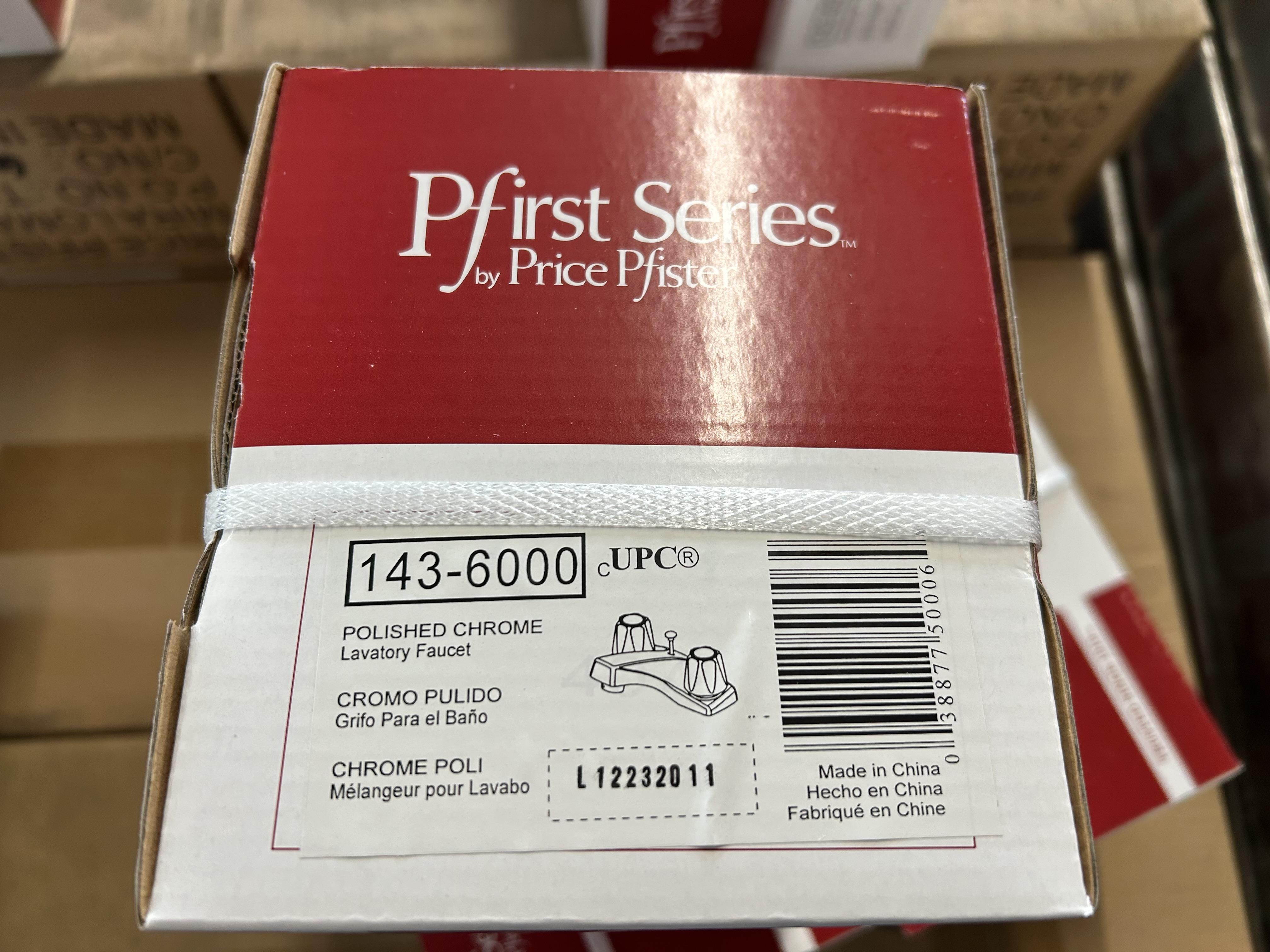Pfirst series, polished chrome lavatory faucet, complete kit. New in box. Many in stock.