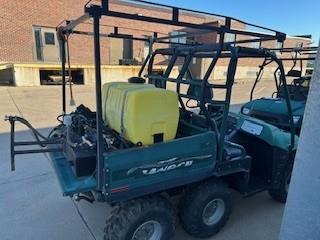1999 Polaris Ranger, 6x6 with sprayer tank and handheld wand on back. Electric dump bed equipped with ladder back, 380 hours.