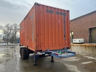 1999 Shipping container, 20 ft. and 2001 Cheetah trailer with air brakes. Good condition.