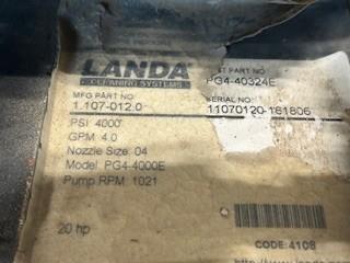 Landa 4-4000 Pressure Washer 4000 PSI. Honda GX620 V-Twin engine. Includes hose and wand attachment. Electric start. Fuel tank not included, unit requires remote fuel source.
