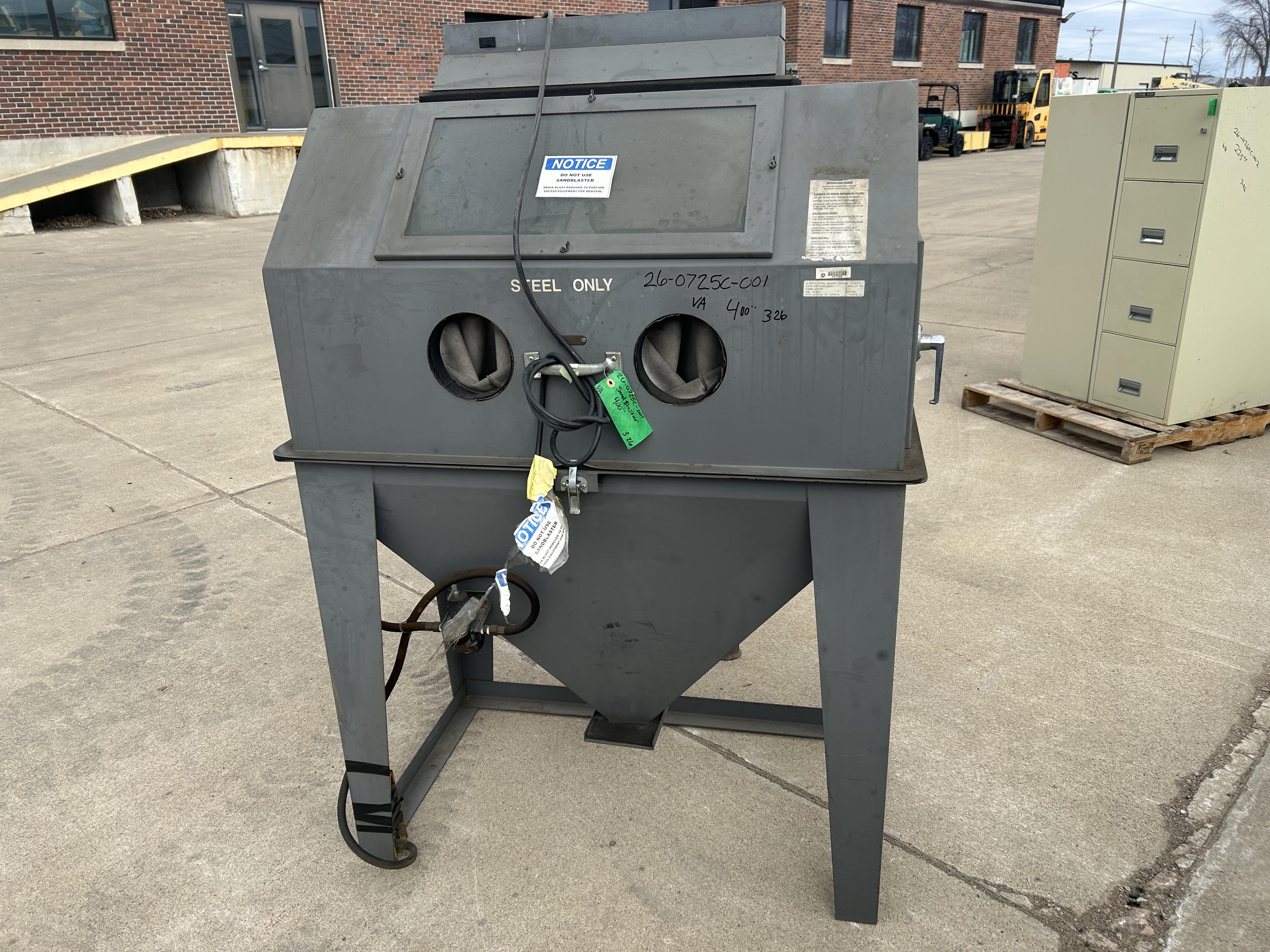 Dayton Sandblasting Cabinet, with air operated foot pedal. Width 42", Height 60", Depth 24".